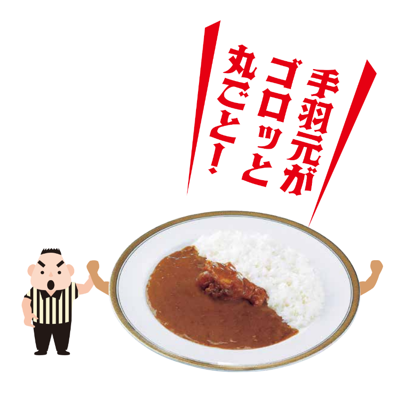 水の代わりに本格豚骨スープを使用し、手羽元を丸ごと一本入れた濃厚チキンカレーです。