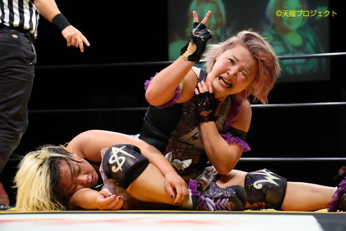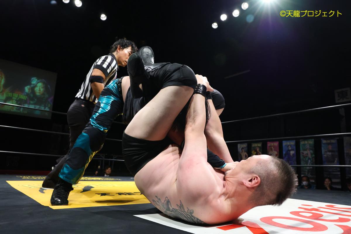 ※岩本の首固めを切り返して