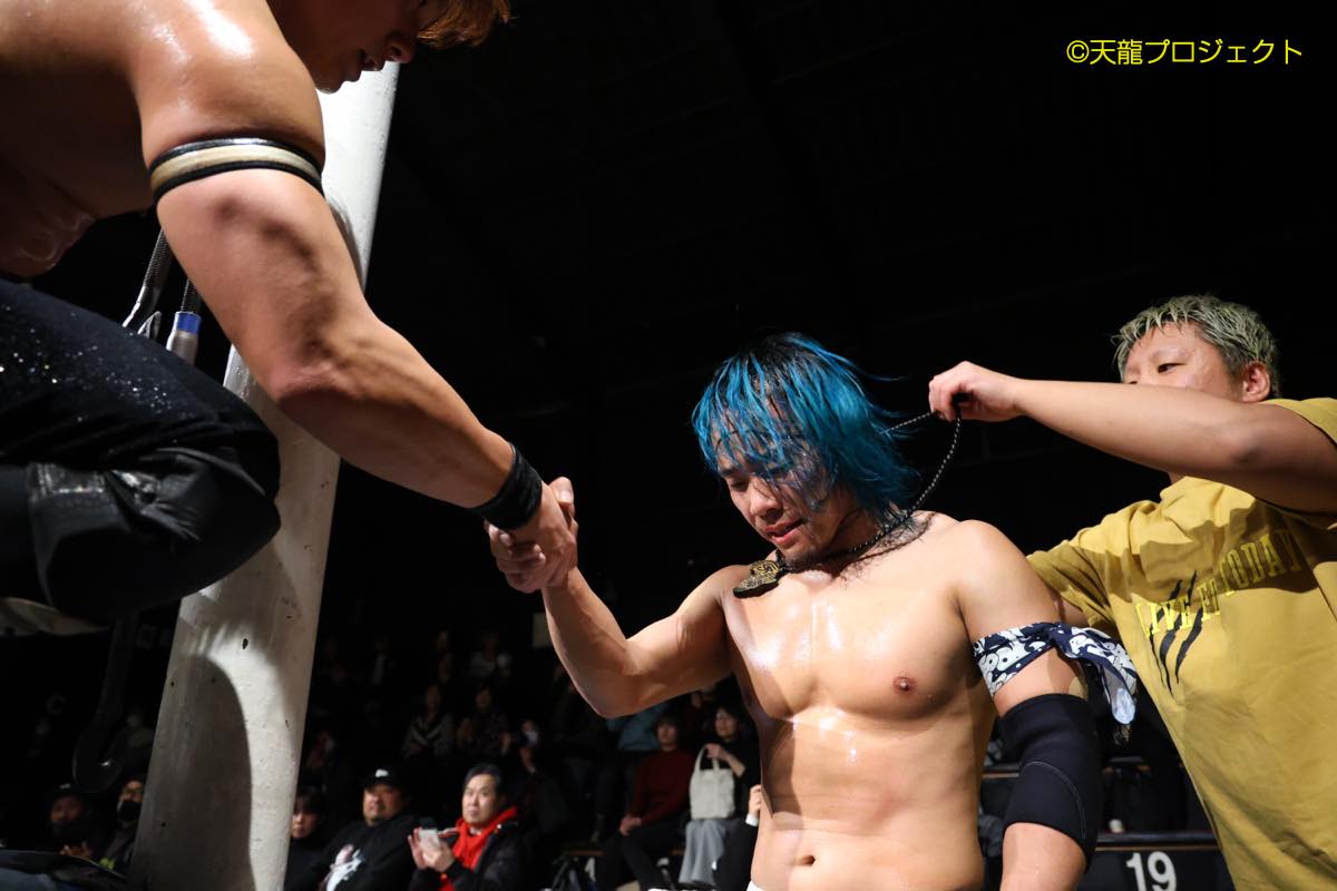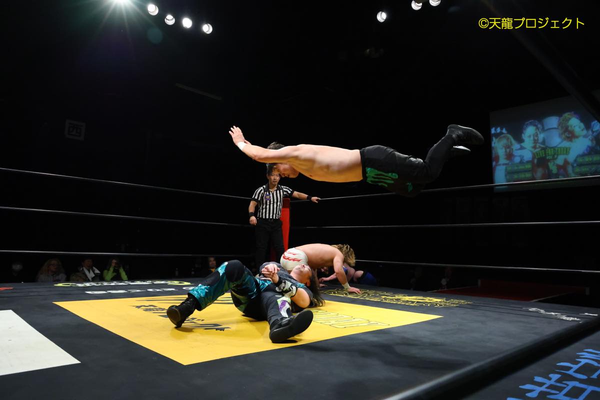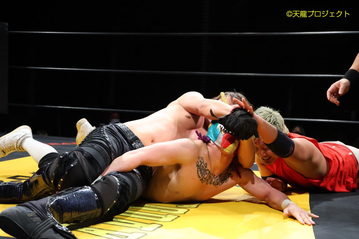<挑戦者組>◯児玉裕輔&仁木琢郎(22分10秒 片エビ固め)<王者組>矢野啓太&本田アユム●