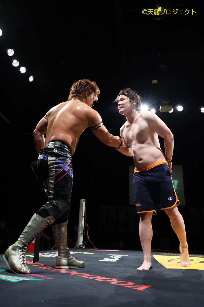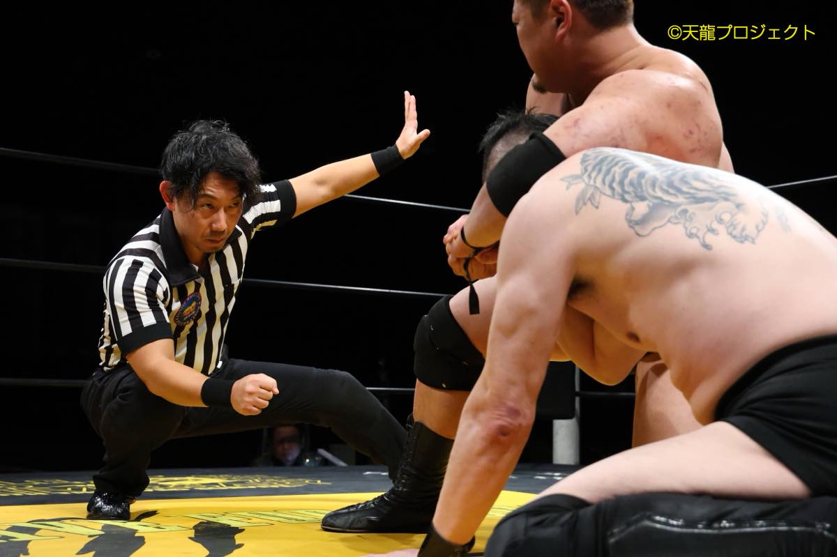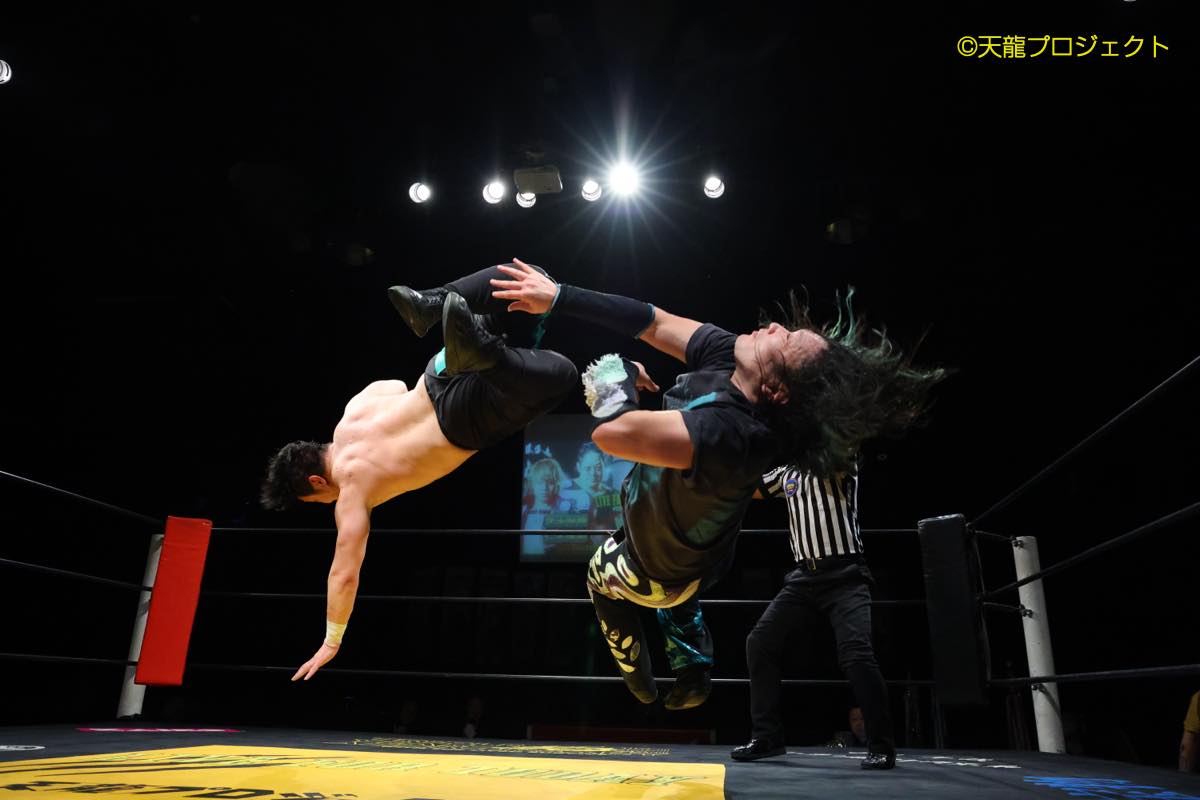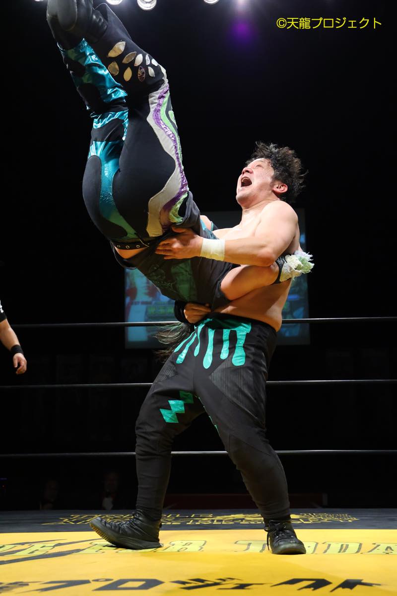 <挑戦者組>◯児玉裕輔&仁木琢郎(22分10秒 片エビ固め)<王者組>矢野啓太&本田アユム●