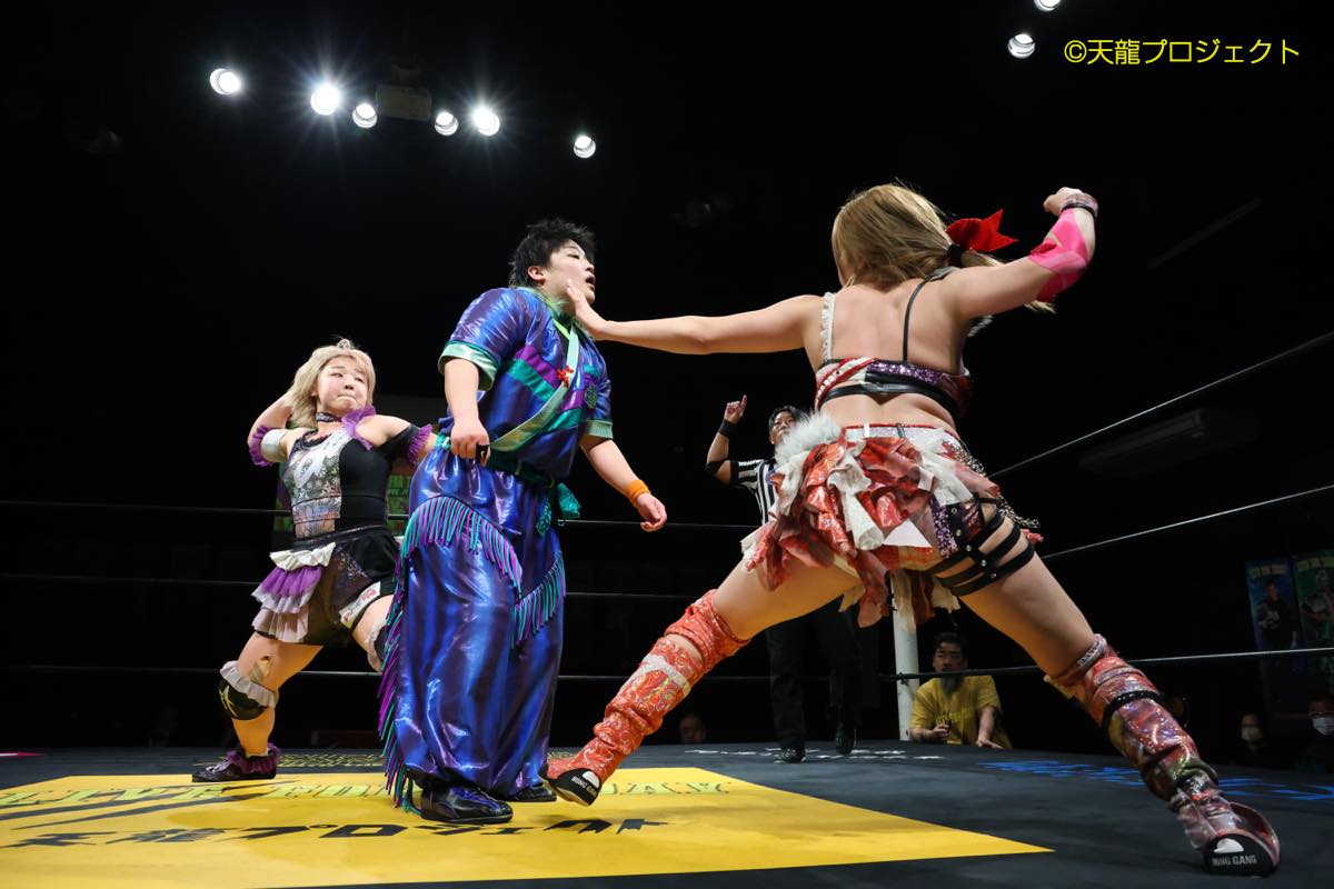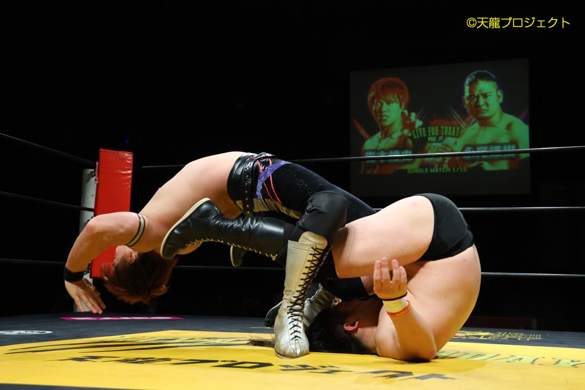 ◯笹村あやめ&梅咲遥(14分34秒 エビ固め)柊くるみ&ソイ●